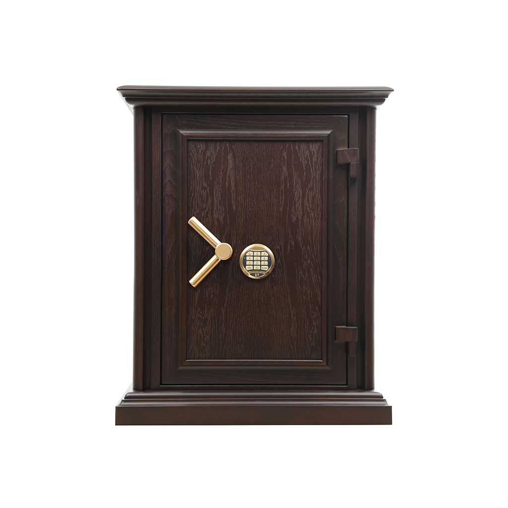 Рекомендованная сумма хранения достигает 6.5 млн. рублей для физических лиц и 2 млн. рублей для юридических. Его эксклюзивный вид с отделкой из натурального дуба, который можно тонировать под любой стиль вашего интерьера, дополнен бархатной внутренней отделкой. Изящная поворотная ручка доступна в матовом хроме или элегантном золоте, подчеркивая престижность этого хранилища.