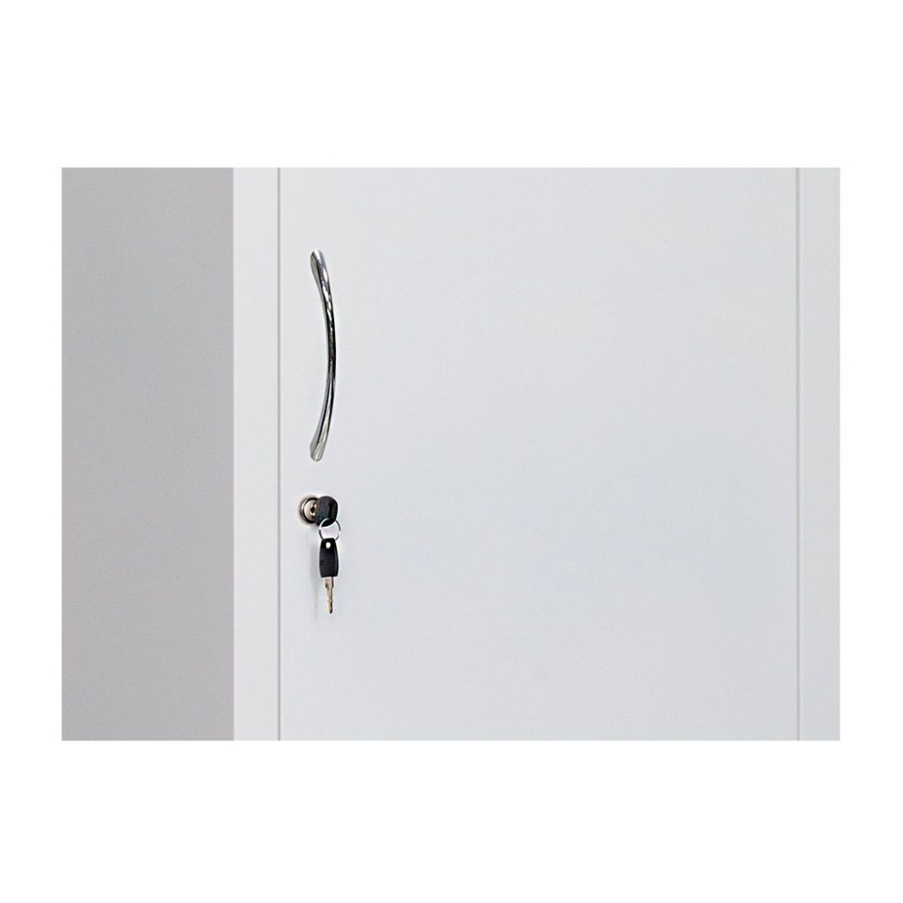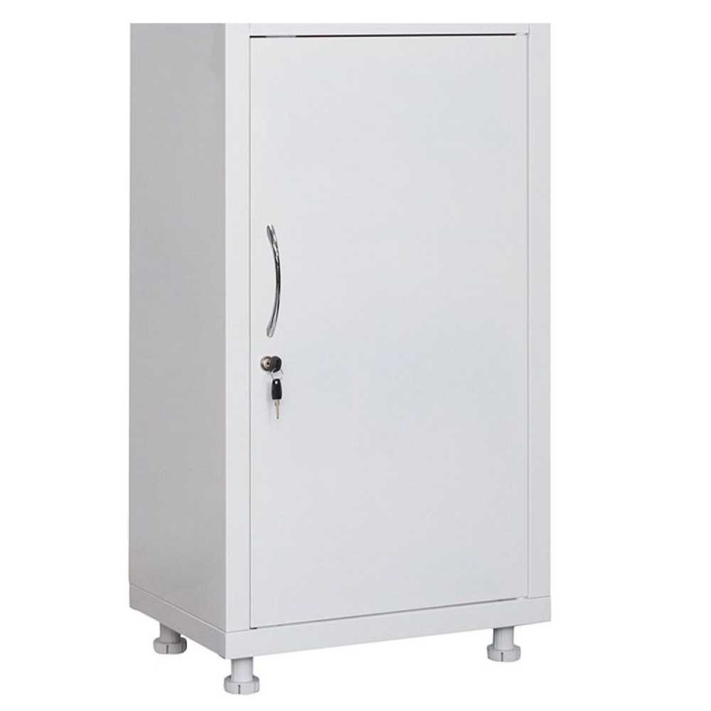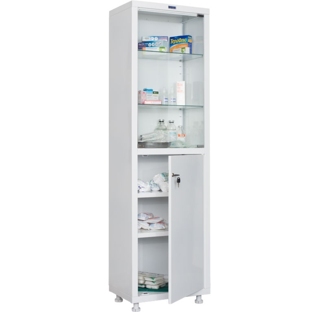 Шкаф медицинский HILFE MD 1 1657/SG отлично подойдет для размещения лекарственных препаратов, инструментов или документации в учреждениях здравоохранения. Корпус изготовлен из стали и покрыт порошковой краской. Верхний отдел ниши оборудован двумя полками из каленого стекла и закрывается стеклянной дверью с магнитными защелками. Нижний отдел оборудован стальной дверью с ключевым замком и двумя полками из металла. Опоры шкафа могут регулироваться по высоте.