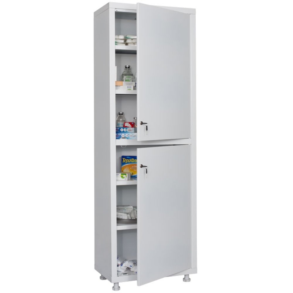 Шкаф медицинский HILFE MD 1 1760/SS позволяет удобно разместить на хранение медицинские инструменты и лекарственные препараты. Шкаф имеет разборную конструкцию и изготовлен из листовой стали с порошковым покрытием. Шкаф двухсекционный, каждая секция имеет две полки и дверь с ключевым замком. Регулируемые по высоте опоры позволяют компенсировать неровности напольного покрытия.