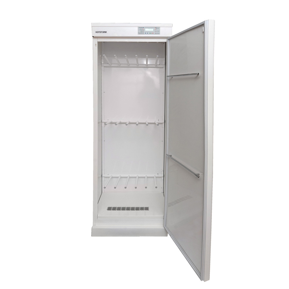 - У модели Hotstorm в схему управления электронного контроллера помимо датчика контроля температуры включен датчик контроля влажности, что позволяет включить в работу шкафа следующие программы: «максимально сухое», «нормально сухое», «влажное», «подогрев», «проветривание».